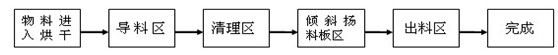 傾斜揚(yáng)料板區(qū):濕煤泥在此區(qū)已呈低水分松散狀態(tài),物料在此區(qū)已不具有粘結(jié)現(xiàn)象,經(jīng)過熱交換后物料達(dá)到所要求的水分狀態(tài),進(jìn)入最后的出料區(qū);