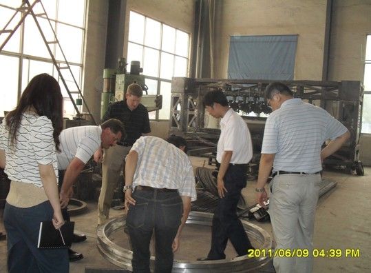 一些海外企業(yè)對萬泰烘干機械的品牌、質(zhì)量十分信賴,通過網(wǎng)絡(luò)平臺就完成了交易過程,也有一些客戶想與萬泰形成長期的友好合作,不遠(yuǎn)萬里來到萬泰的生產(chǎn)基地進(jìn)行實地的考察。2011年6月9日,美國客戶一行5人來我公司考察,進(jìn)一步洽談石英砂烘干系統(tǒng)工程。